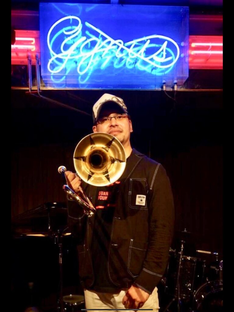 昭和音楽大学短期大学部でトロンボーンを学び、有名なテーマパークのメインバンドに在籍、ビッグマウスのバンドリーダー兼、アレンジを担当し全国ツアーや様々な国内イベントで演奏。
